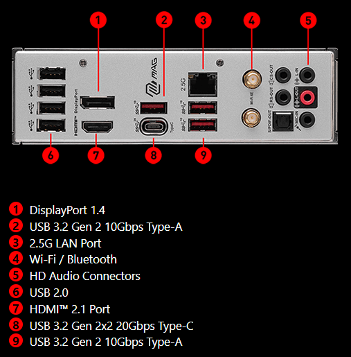1x USB 3.2 Gen2x2 Type C (Rear) -